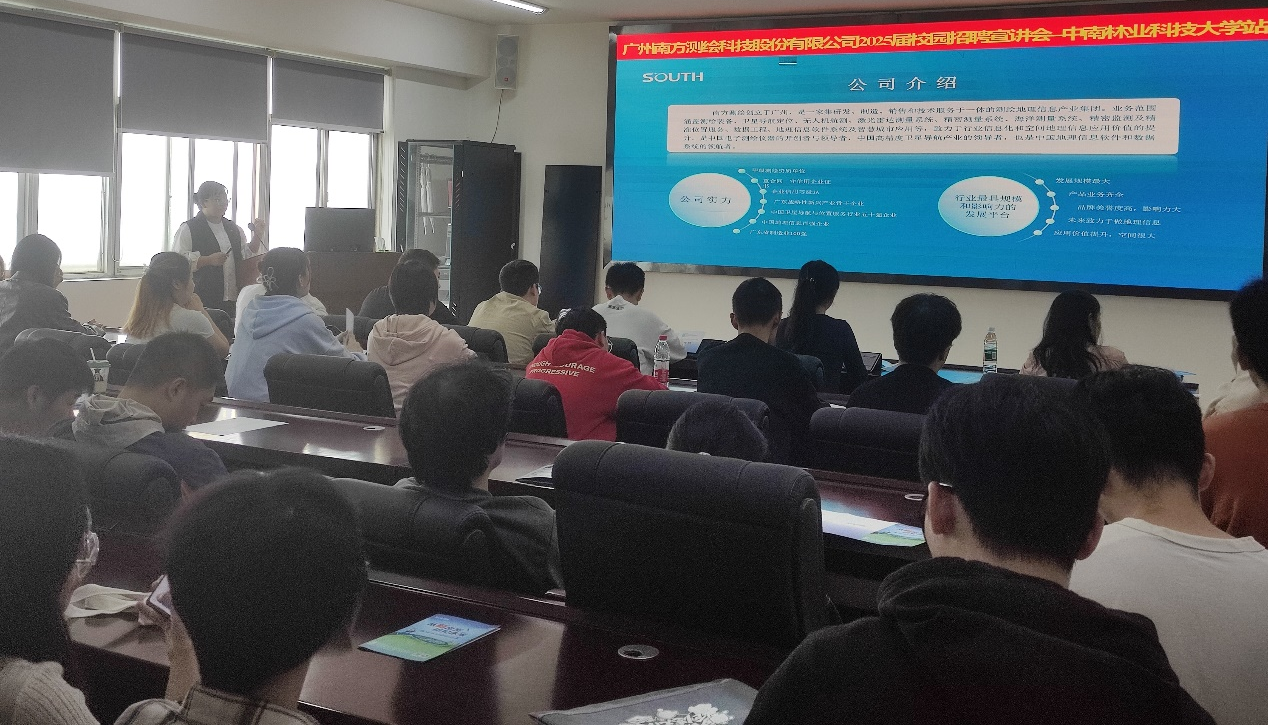 10月17日,广州南方测绘科技股份有限公司在我院求是楼1301室开展了2025届毕业生校园招聘活动。