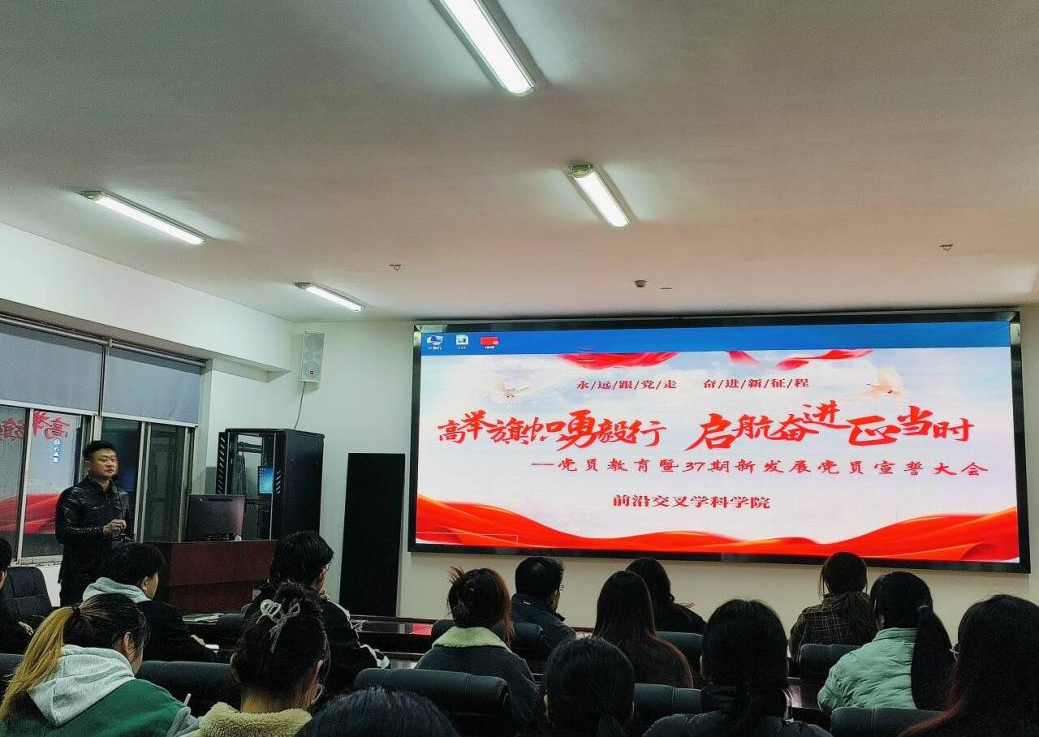 为进一步加强对新发展党员的党性教育,切实增强学生党员的责任感、使命感,12月4日晚,前沿交叉学科学院举行了党员教育暨新党员宣誓大会。学院党总支书记马振山、潘晓杰老师、学生党支部书记、全体学生党员及第37期新发展党员参加了会议,会议由党总支副书记吴敬东主持。