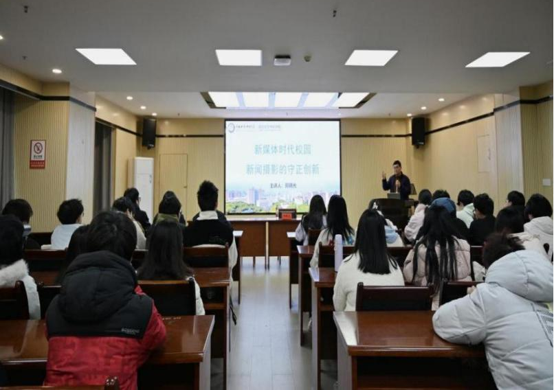 郑晓光阐述了校园新闻与纪实摄影的重要性,指出要注重新闻意识、策划、创新以及实践。他针对人像、风景、纪实和商业等常见摄影题材,分享了丰富的摄影经验。