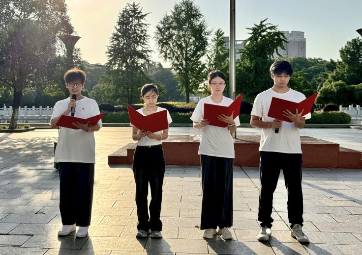 为激励我院学子传承先辈精神力量,树立崇高理想信念,6月16日早,我院在陶铸广场举行“国旗下的誓言”爱国主义教育活动。学校学生工作部、武装部副部长郭屹,学院党委书记潘云、副院长(主持工作)周璀、党委副书记吴敬东,全体辅导员及各学生党支部、团委学生会成员代表参与此次活动。会议由学院党委副书记吴敬东主持。