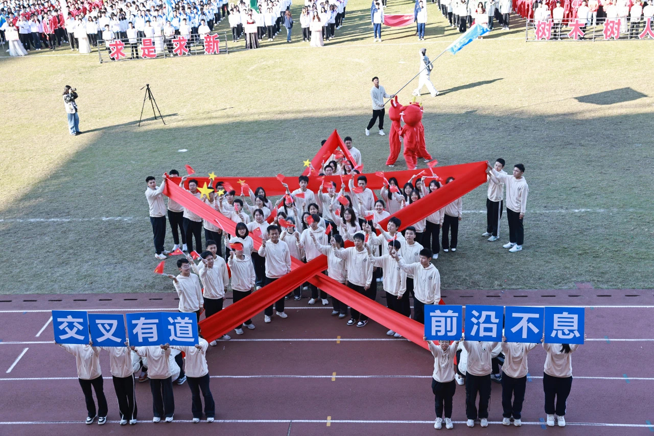 开幕式上,我院以“五星红旗”为主题,迅速有序地做出队形变化,传递“交叉有道,前沿不息”的理念,并喊出“举旗铸魂、创新为战;追光前沿、奋勇争先。”的口号,充分体现了我院昂扬向上的精神风貌。