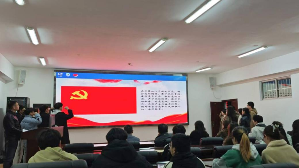 为进一步加强对新发展党员的党性教育,切实增强学生党员的责任感、使命感,12月4日晚,前沿交叉学科学院举行了党员教育暨新党员宣誓大会。学院党总支书记马振山、潘晓杰老师、学生党支部书记、全体学生党员及第37期新发展党员参加了会议,会议由党总支副书记吴敬东主持。