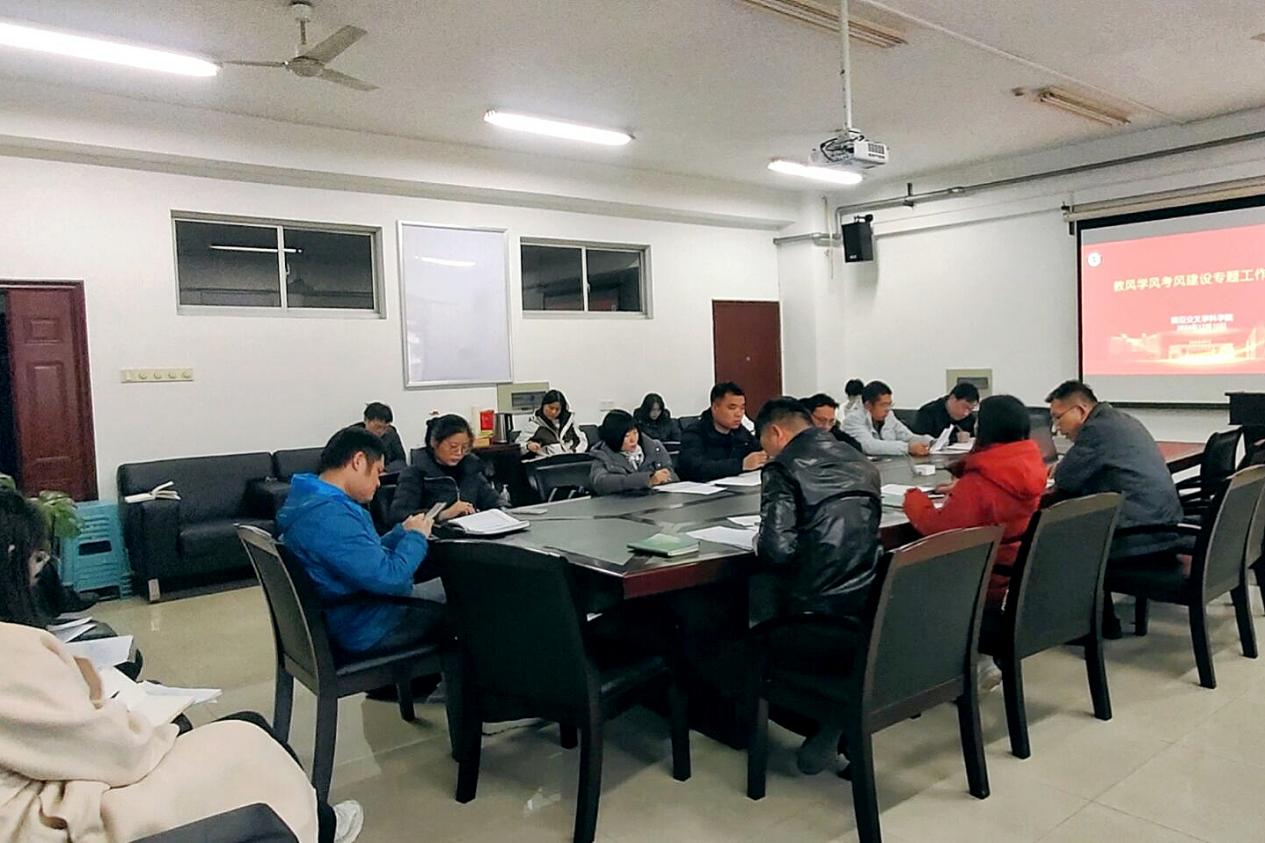 会上,副院长周璀率先介绍教风相关工作与要求,明确教学规范与教师职责,从教学计划的严谨制定到课堂教学的高效执行,全方位解读教风建设要点,为教师教学工作提供明确指引。副书记吴敬东则深入剖析学风建设现状,通过数据与案例展示当前学生学习风貌,点明问题与挑战,强调良好学风对学生成长的重要性,并提出促进学风优化的举措。